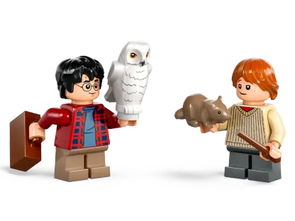 - Adventure toy playset featuring 4 LEthtGO Harry Potter characters – Harry Potter and Ron Weasley minifigures, Hedwig and Scabbers figures, plus a suitcase and 2 wand elements