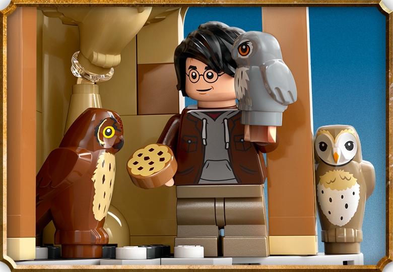 - 3 LEGO® Harry Potter™ characters – Cho Chang™,Argus Filch and Harry Potter LEGO minifigures, plus 5 different owl toy figures, including Pigwidgeon
