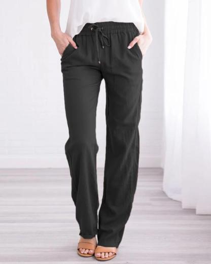 Pantalon droit en lin et coton pour femme