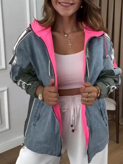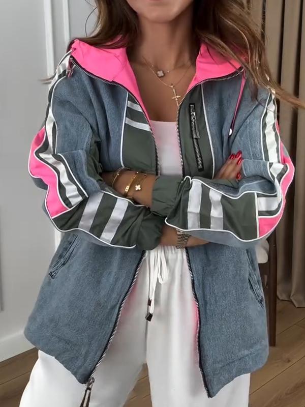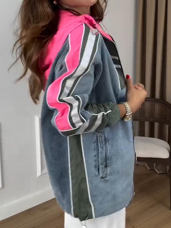Women's Hooded Long Sleeve Patchwork Coat